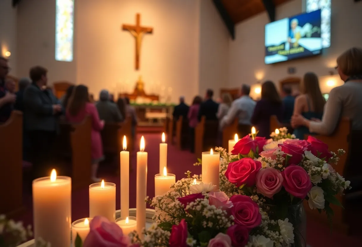 Candles and flowers at a church setting for Elida Parra Robles memorial