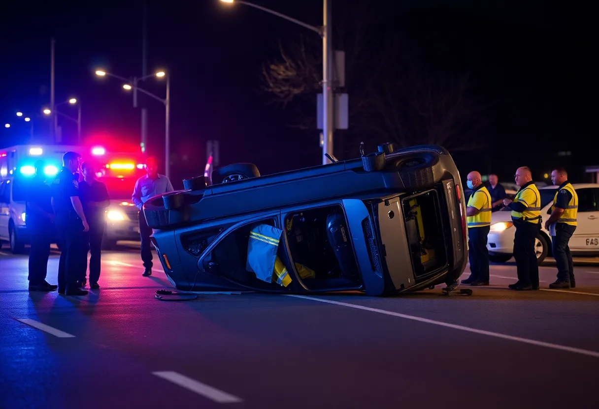 Emergency responders at the site of a roll-over car accident on Wurzbach Parkway