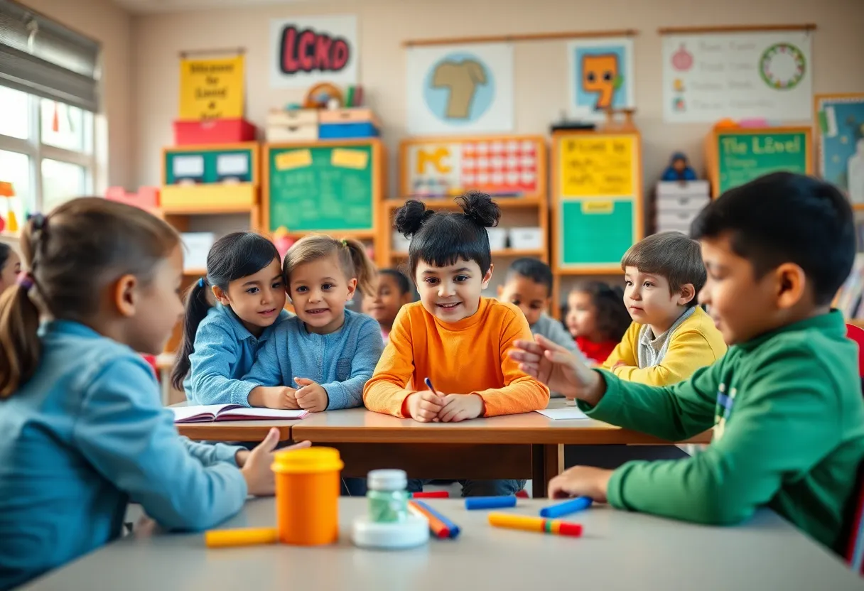 Children participating in class activities promoting kindness and education.