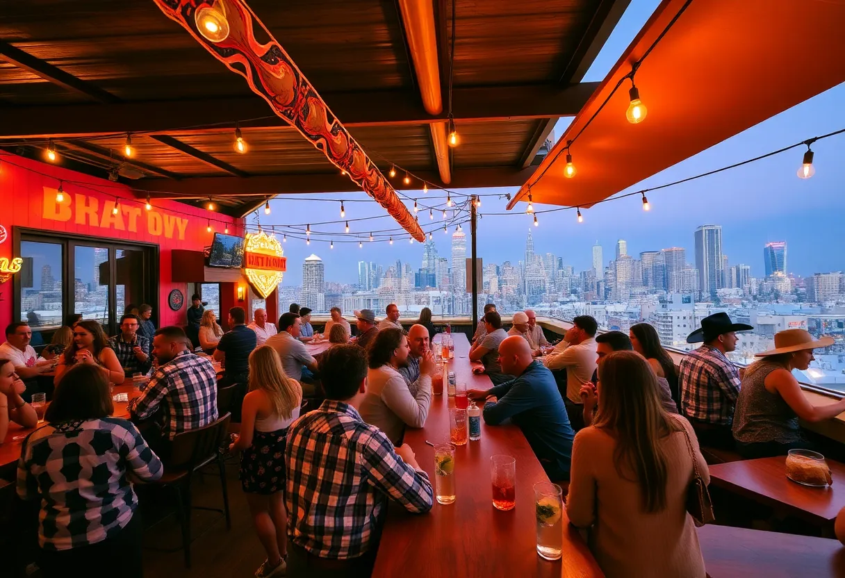 Vibrant rooftop bar in San Antonio with rodeo theme