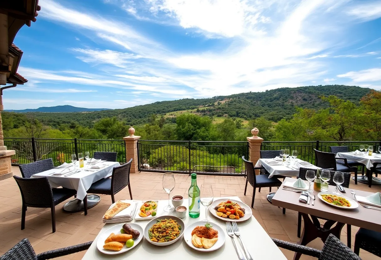 Outdoor dining experience at JW Marriott Hill Country Resort showcasing various cuisines.