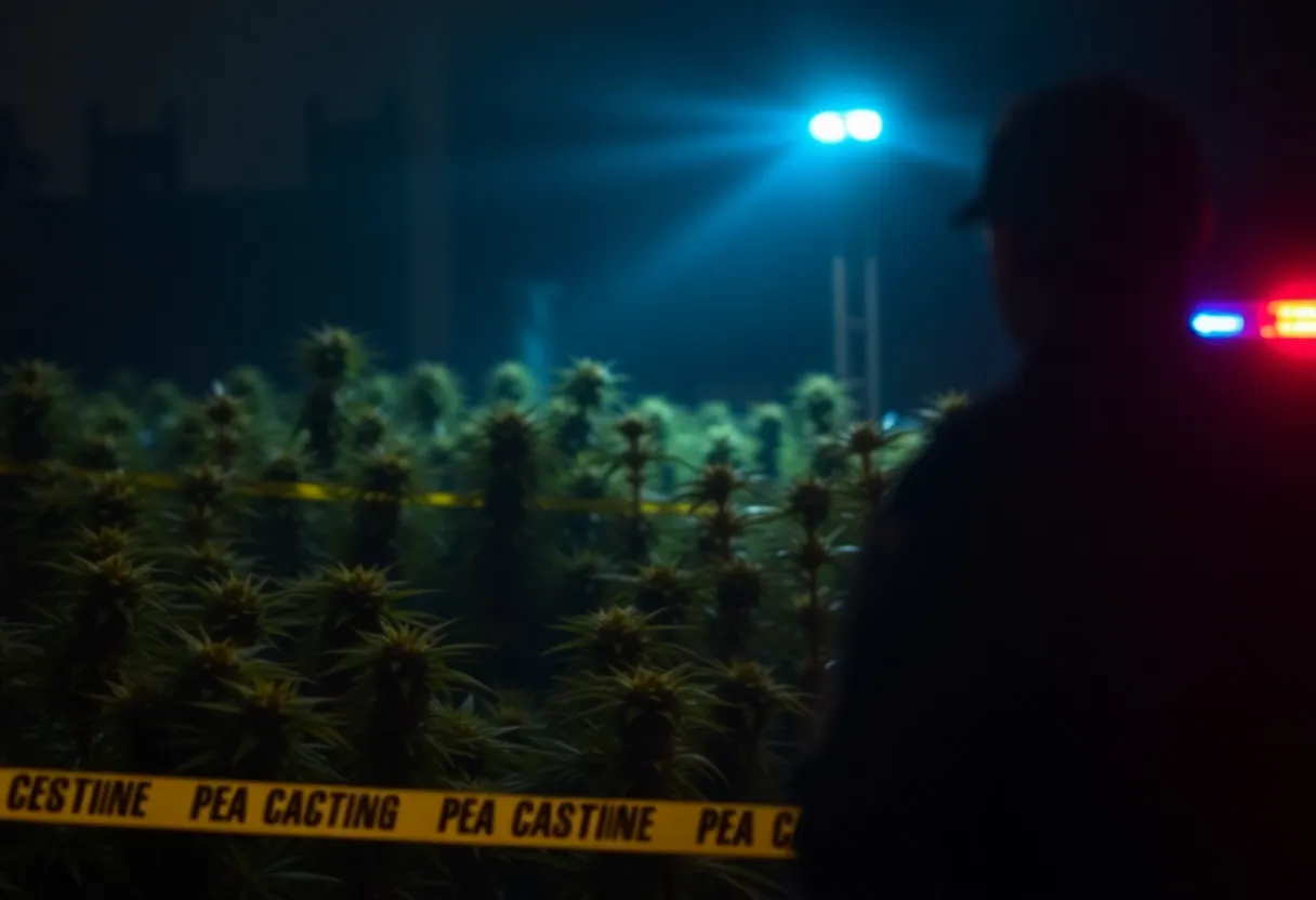 Police lights at a crime scene related to DEA impersonation and marijuana theft