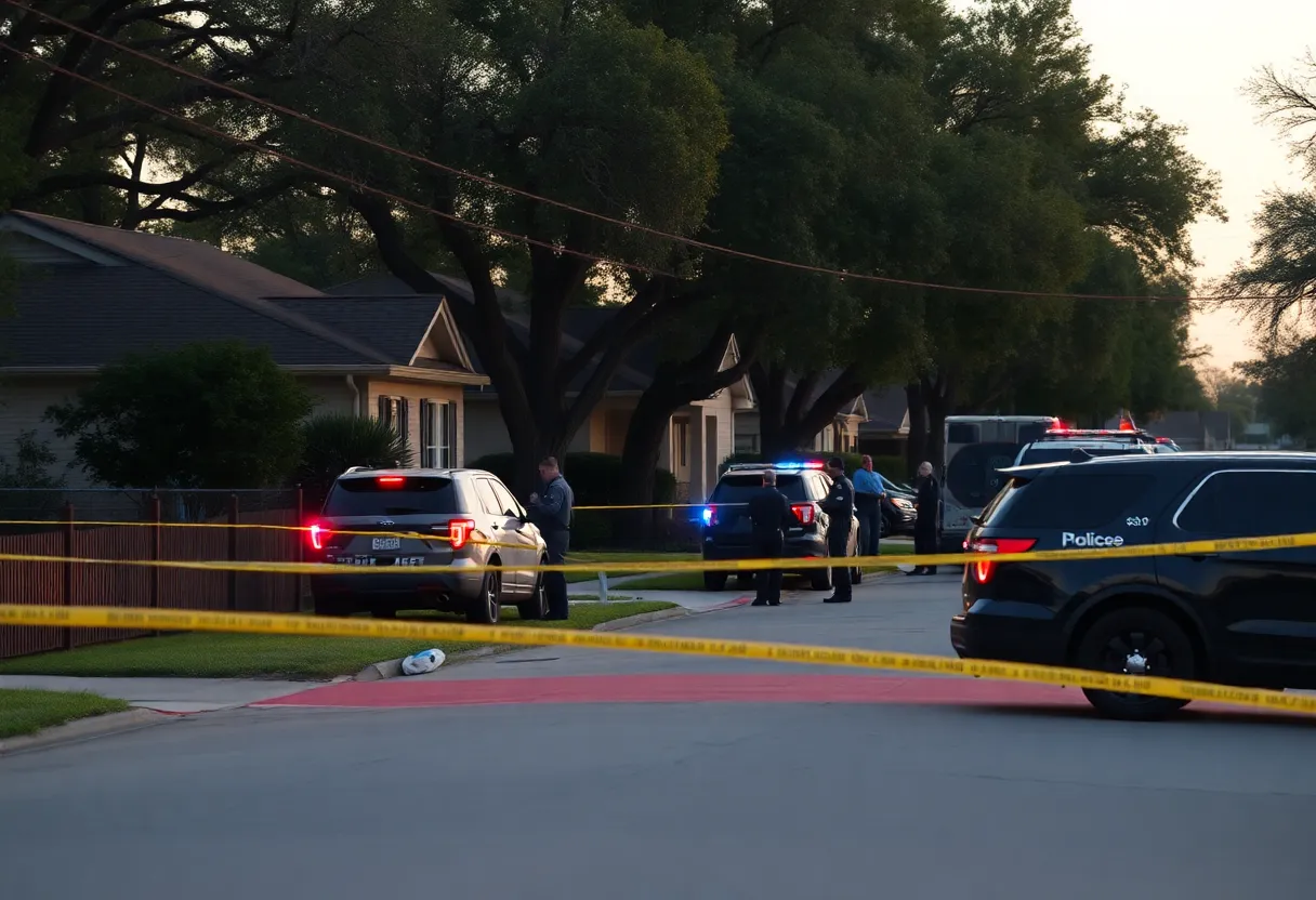 Police officers investigating a murder scene in a San Antonio neighborhood
