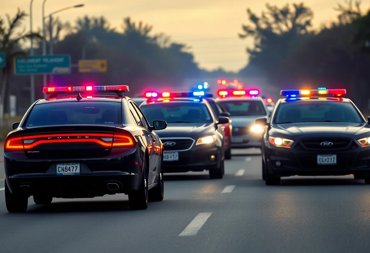 High-speed police chase involving multiple vehicles.