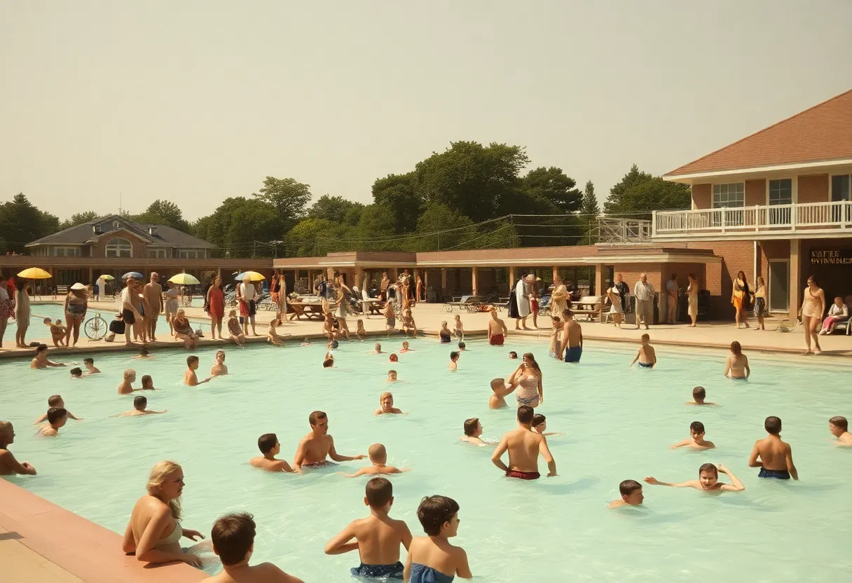 Historic photo of Terrell Wells swimming pool with families enjoying
